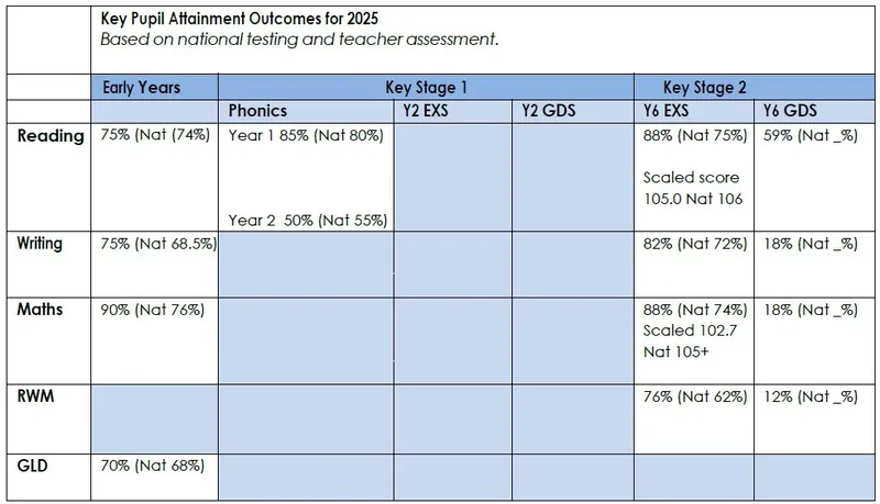 We are all extremely proud of the year 6 children for their wonderful SATs results. These results are a reflection of the hardwork and determination they all showed throughout the year. Well done!
